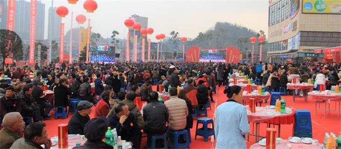 友華集團新春團拜會以壩壩宴的形式舉辦,這已是第5次。而此次的團拜會更是“星耀不眠夜,鳳舞九重天”精彩不斷,盛況空前!人數(shù)高達3400余人,創(chuàng)歷史新高,稱得上是“自貢史上最強團拜宴!”
